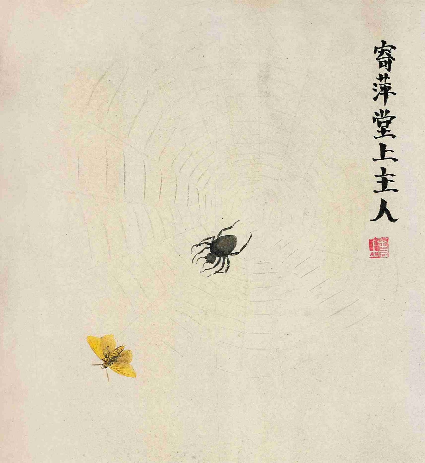 九七 蜘蛛飛蛾(工筆草蟲册之十七)一九〇八—一九〇九年 縱三三點五厘米 横三二點五厘米