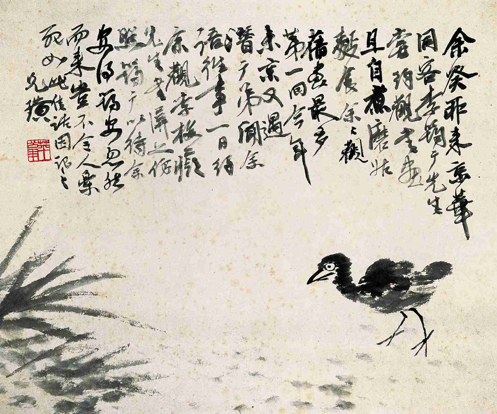 一五四 芙蓉游鴨(花鳥草蟲册之三)一九一七年 縱三九點五厘米 横四五點七厘米