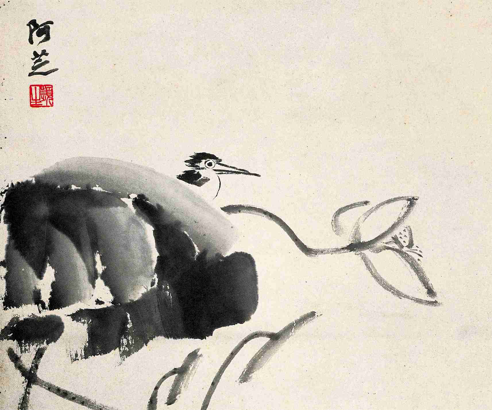 一五三 荷花翠鳥(花鳥草蟲册之二)一九一七年 縱三九點五厘米 横四五點七厘米