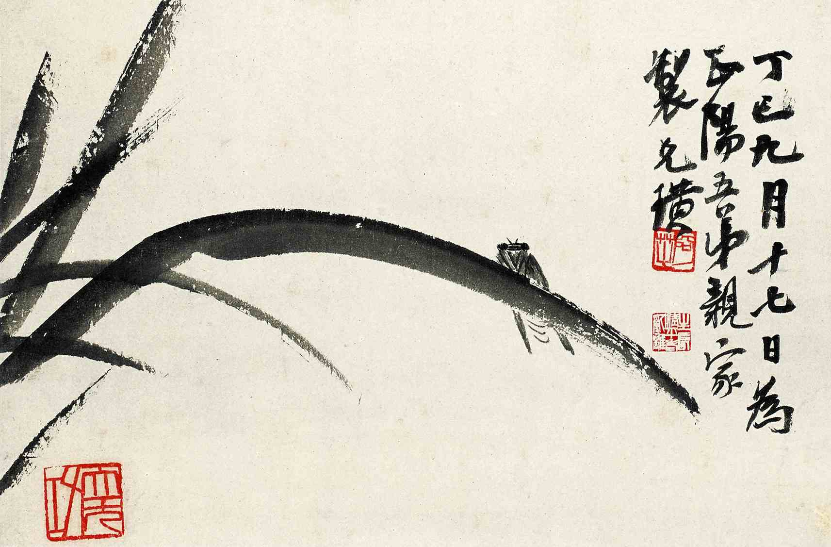 一六三 秋蟬(册頁之一)一九一七年 縱二九點五厘米 横四四厘米