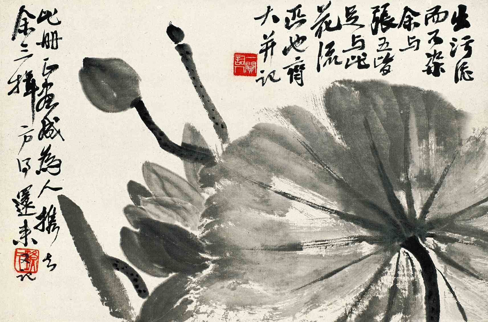 一六五 荷花(册頁之三)一九一七年 縱二九點五厘米 横四四厘米
