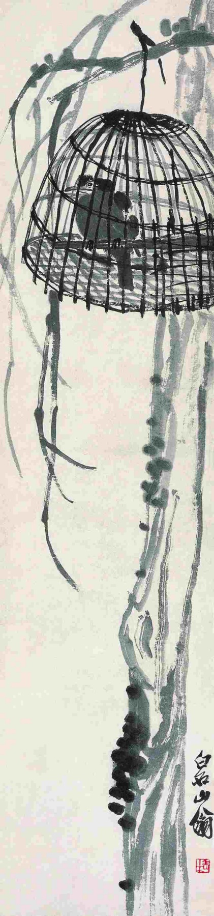 九六 籠中八哥 約二十世紀二十年代晚期 縱一三五厘米 橫三二厘米