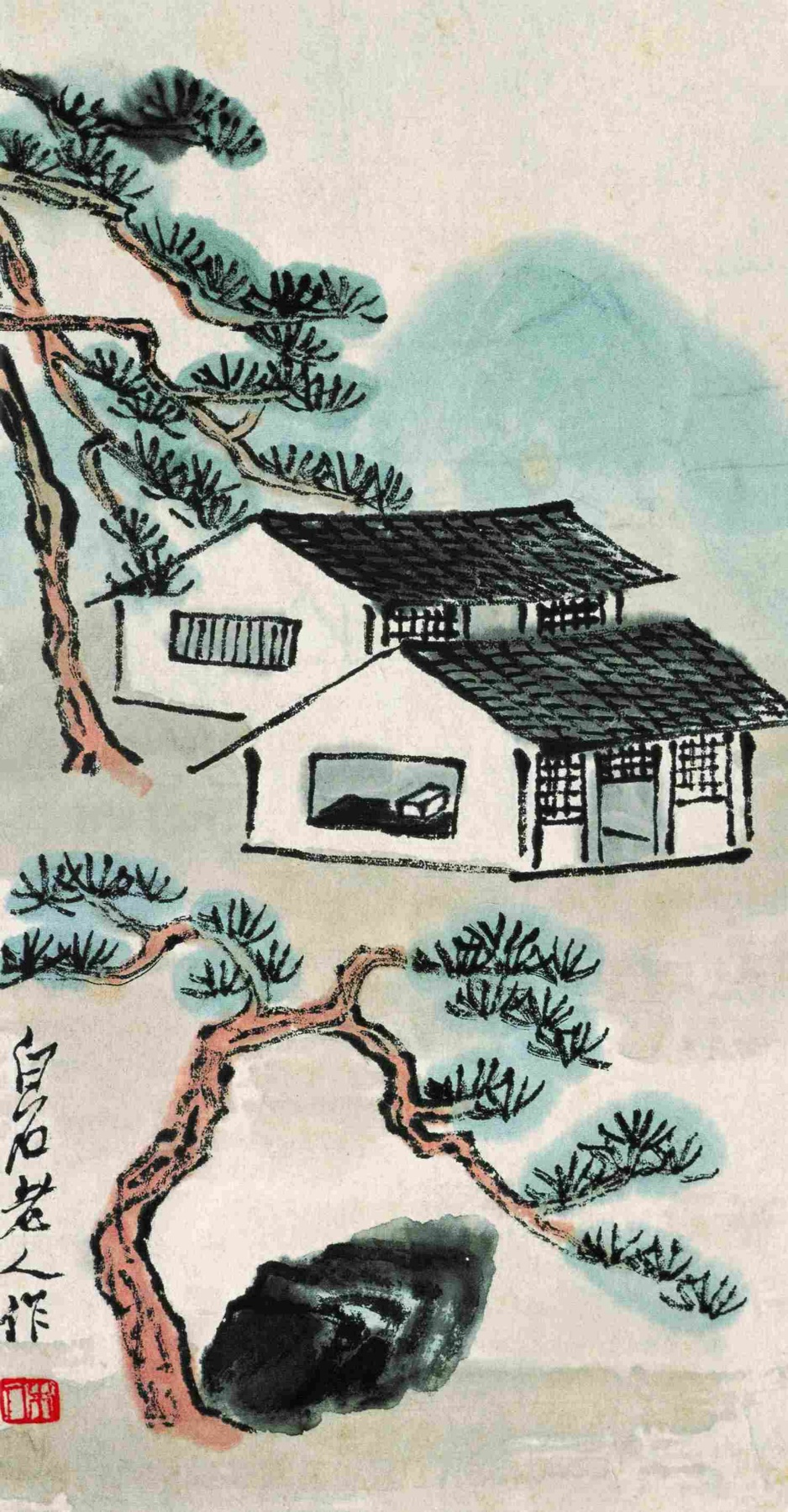 四二 白石草堂圖 約二十世紀三十年代初期 縱九九點三厘米 橫三三厘米