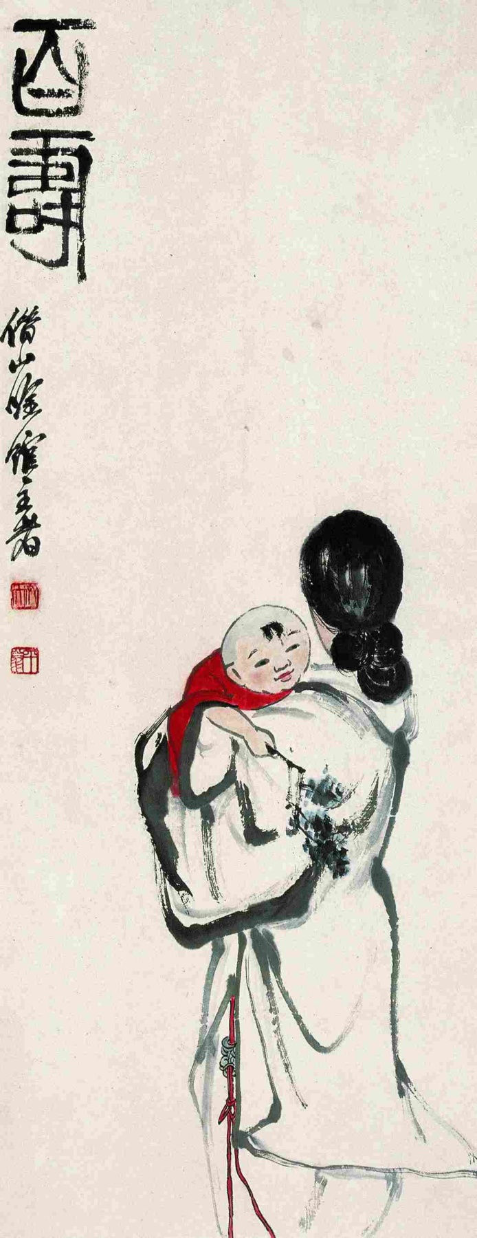 五五 百壽(人物條屏之三) 一九三四年 縱一〇九厘米 橫四三厘米