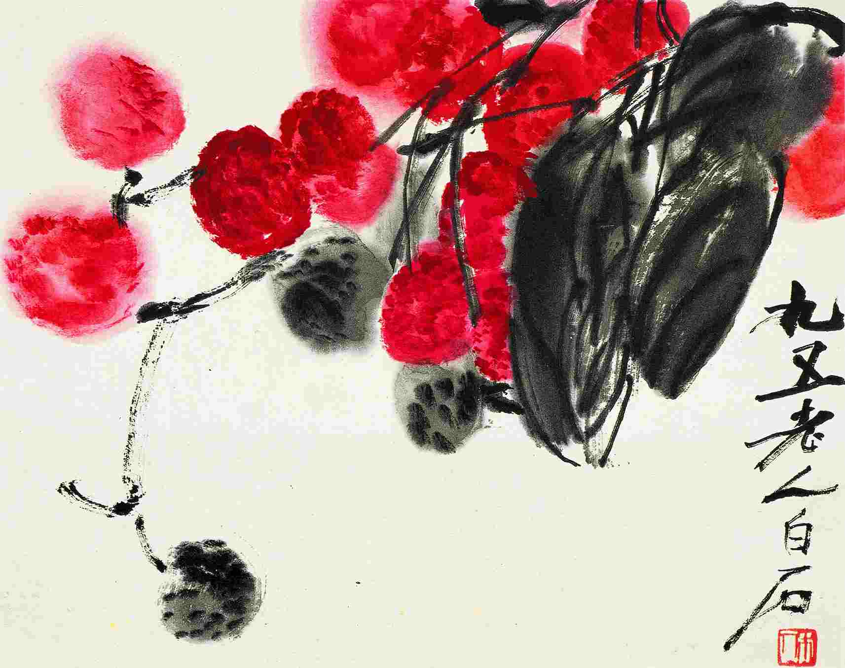 二三八 荔枝(花果册之二) 一九五五年 縱二七厘米 橫三四厘米