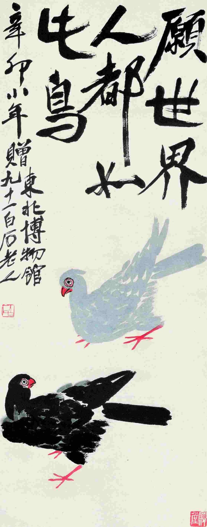 七九 願世界人都如此鳥 一九五一年 縱九九厘米 横四〇厘米
