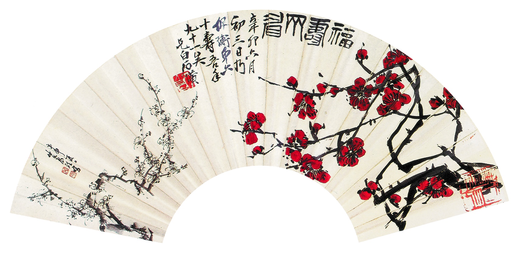 八一 福壽齊眉(扇面)一九五一年 縱一八厘米 横五七厘米