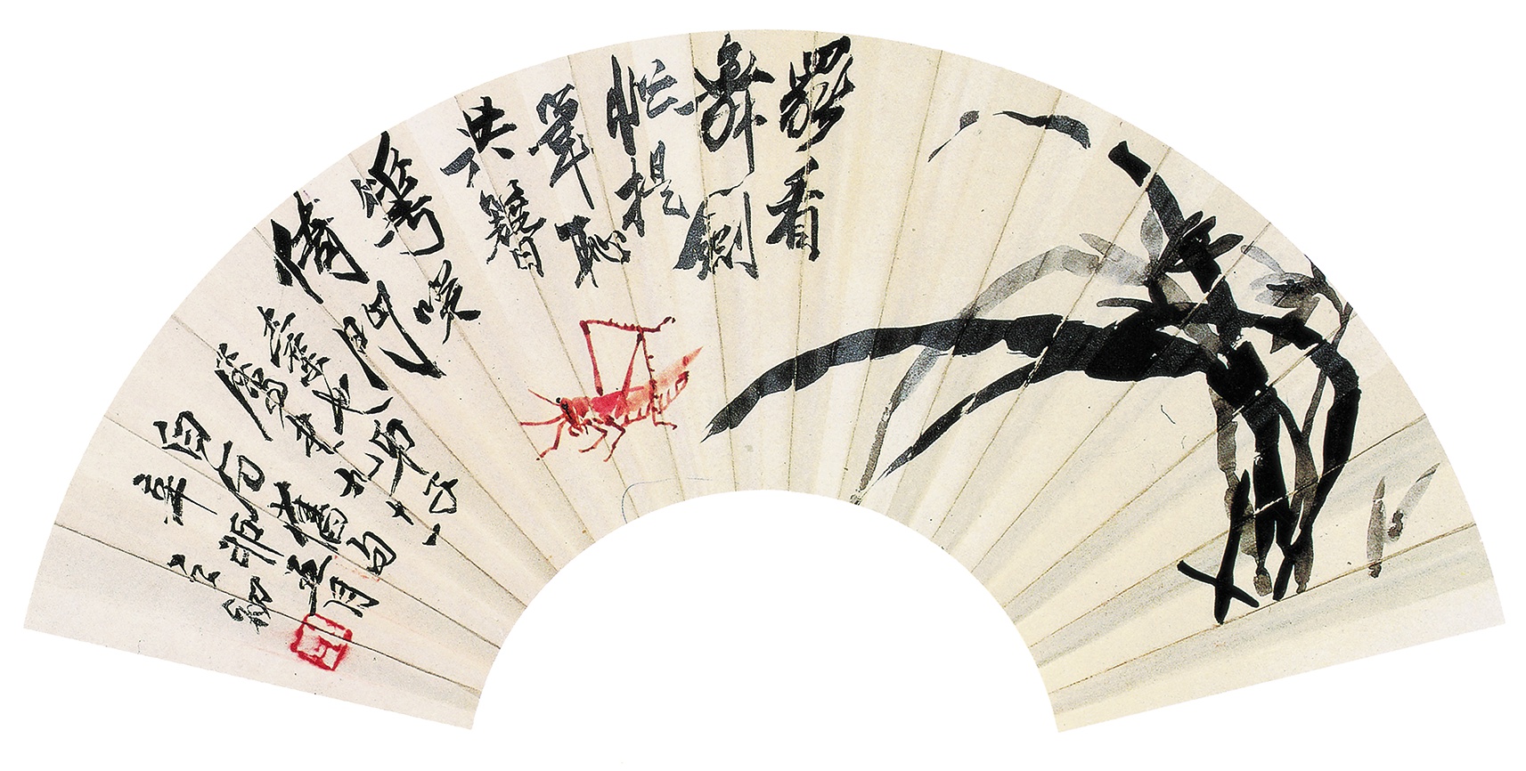 八三 蘭花蚱蜢(扇面)一九五一年 縱一八厘米 横五五點五厘米
