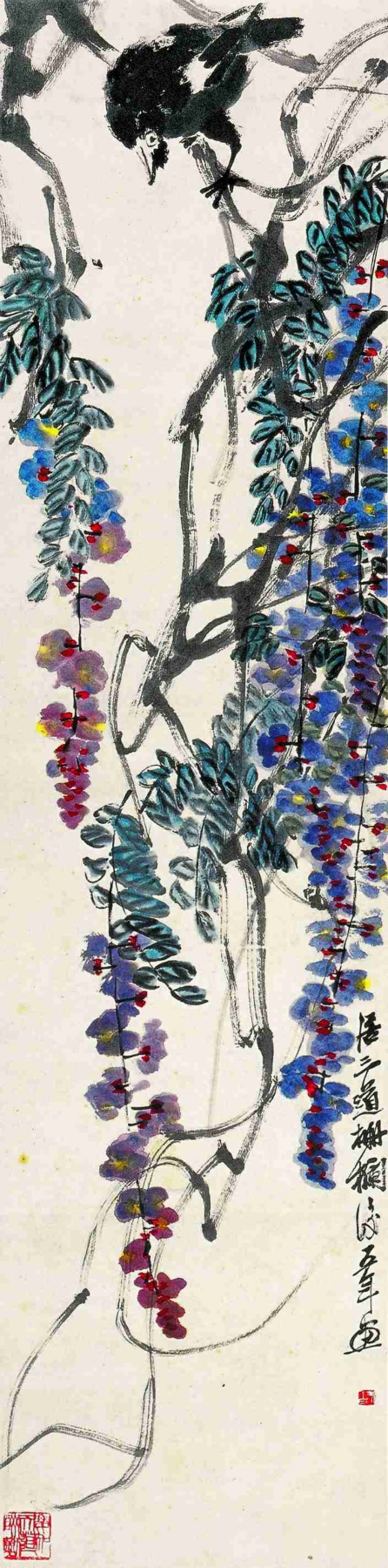 三二一 紫藤八哥 一九二七年 縱一三六點五厘米 橫三三點五厘米