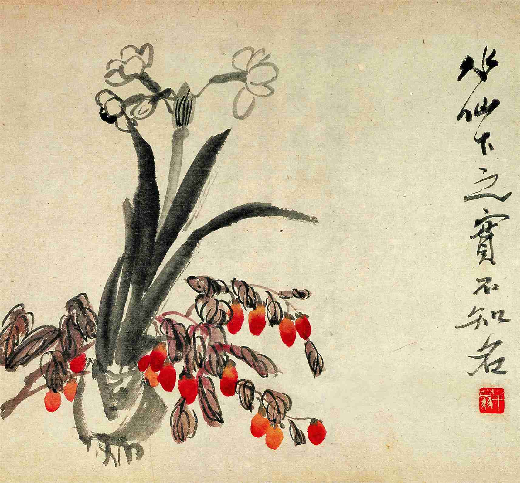 四〇 水仙 (花卉書稿之一) 一九二〇年 縱二九點五厘米 橫三二厘米