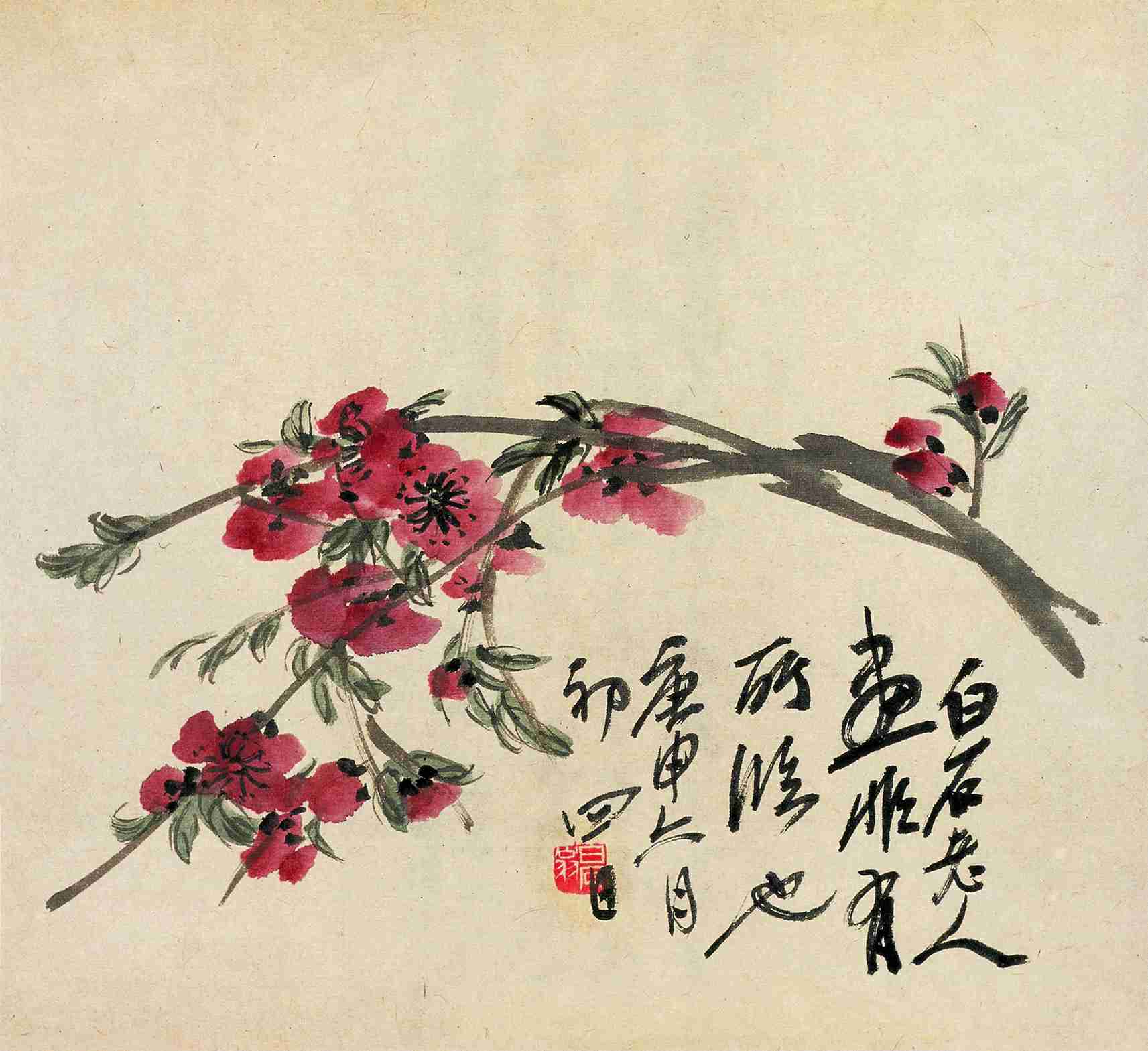 四二 桃花 (花卉書稿之三) 一九二〇年 縱二九點五厘米 橫三二厘米