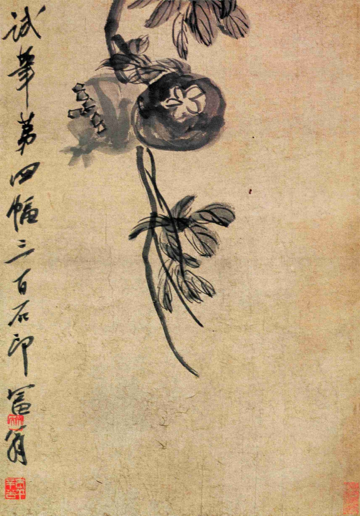 五三 石榴 (花果四條屏之四) 約一九二〇年 縱五二厘米 橫三六厘米