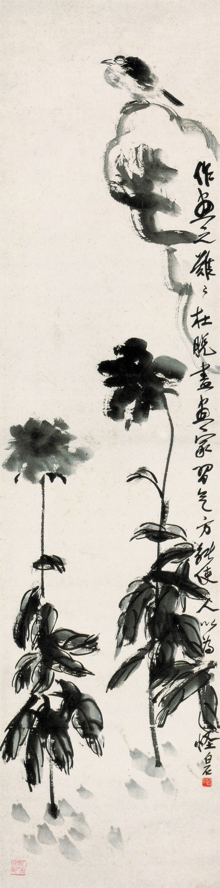 五四 牡丹小鳥 約 一九二〇年 縱一三五厘米 橫三三點五厘米
