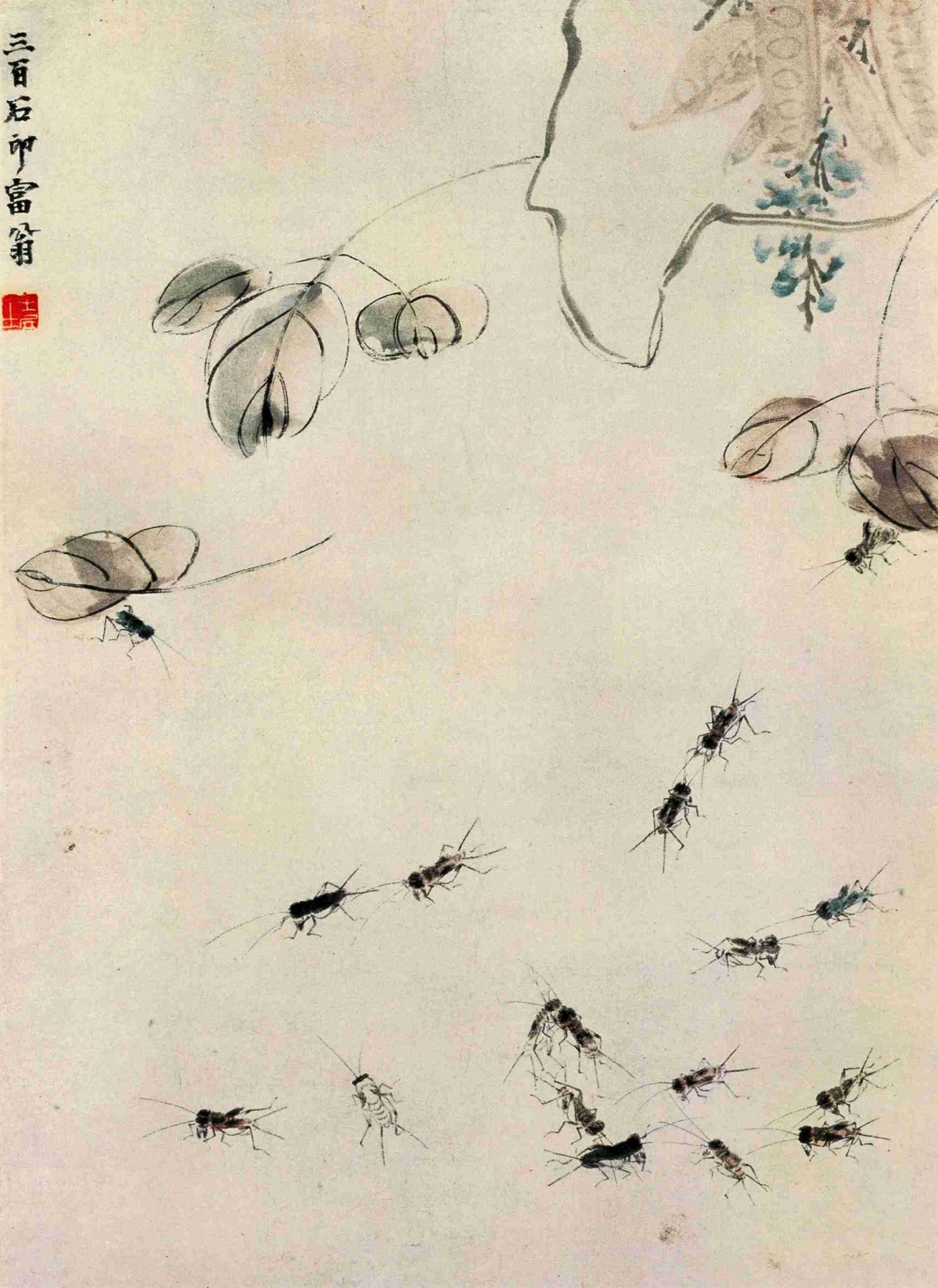 五九 螞蚱貝葉 (廣豳風圖册之一) 一九二一年 縱二五點四厘米 橫三二點五厘米