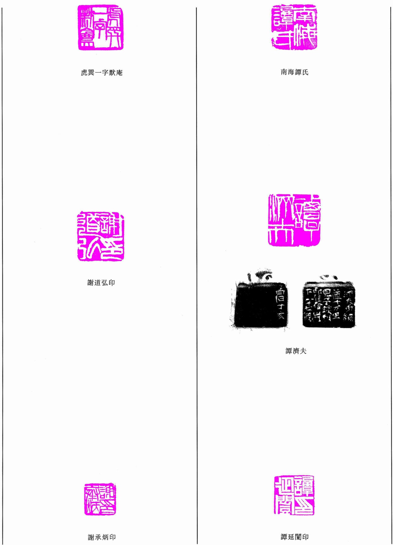 虎巽一字默庵/南海譚氏/譚濟夫/謝承炳印/譚廷闓印