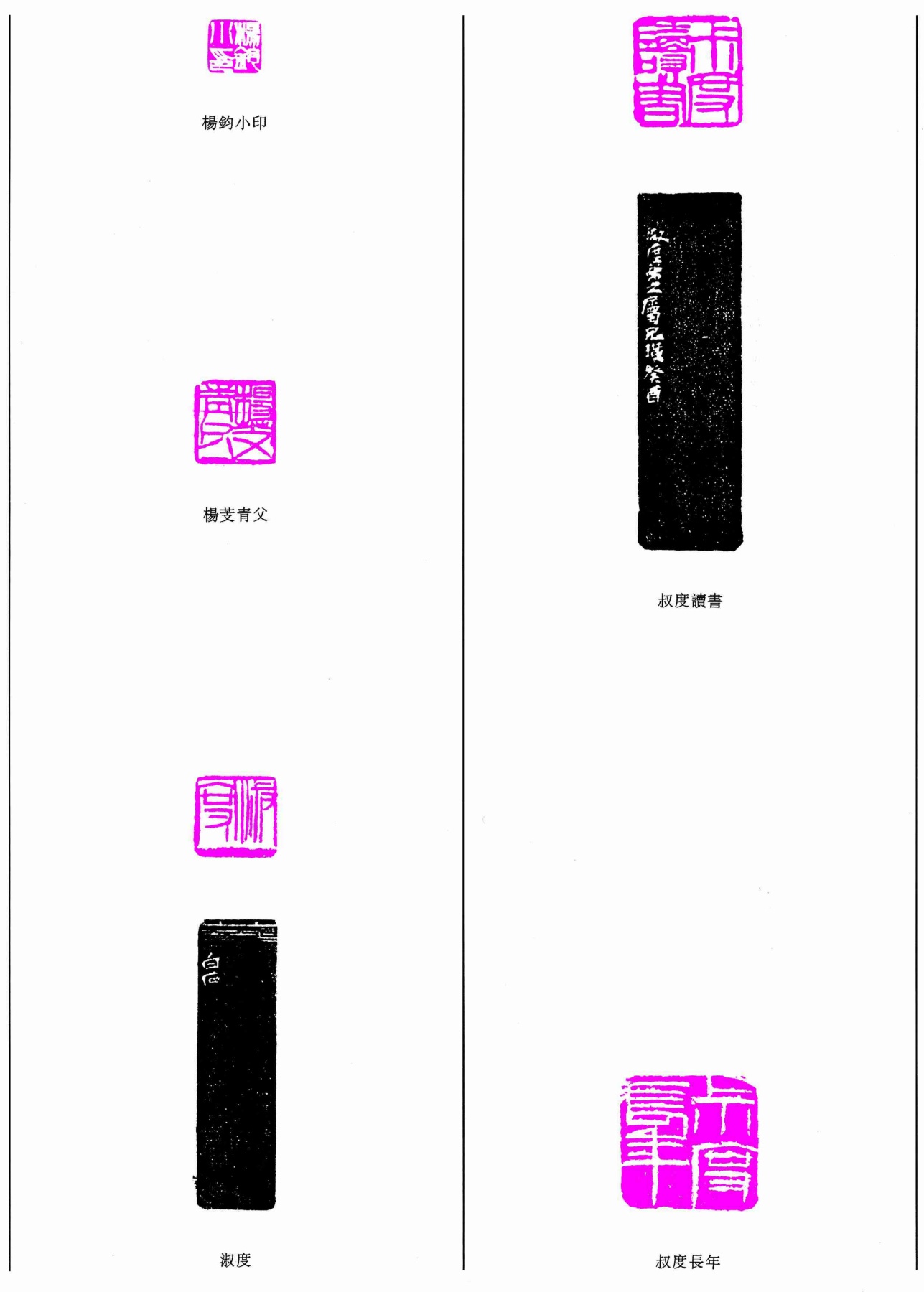 陽鈞小印/楊芰青父/叔度讀書/叔度長年/淑度