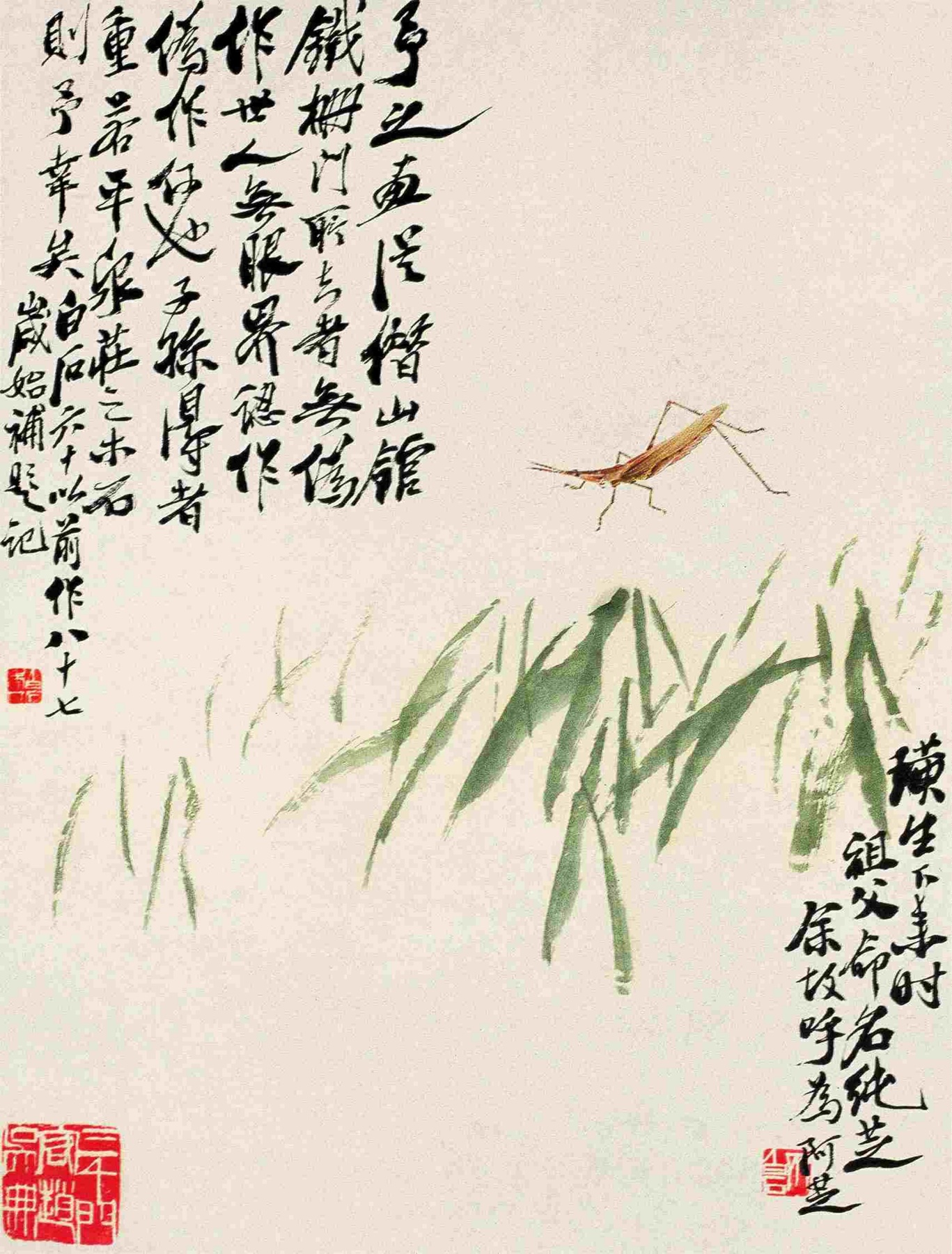 二一七 穀穗螞蚱(花鳥草蟲册頁之一) 約二十世紀二十年代初期 縱四五厘米 橫三四點五厘米