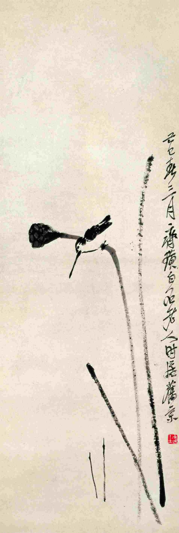 二四 蓮蓬翠鳥 一九二九年 縱一〇一點一厘米 橫三三點六厘米