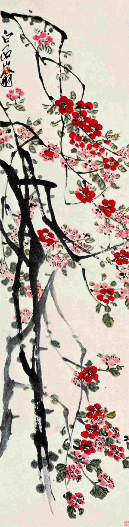 二九 杏花(花卉條屏之二) 一九二九年 縱一三六厘米 橫三一厘米