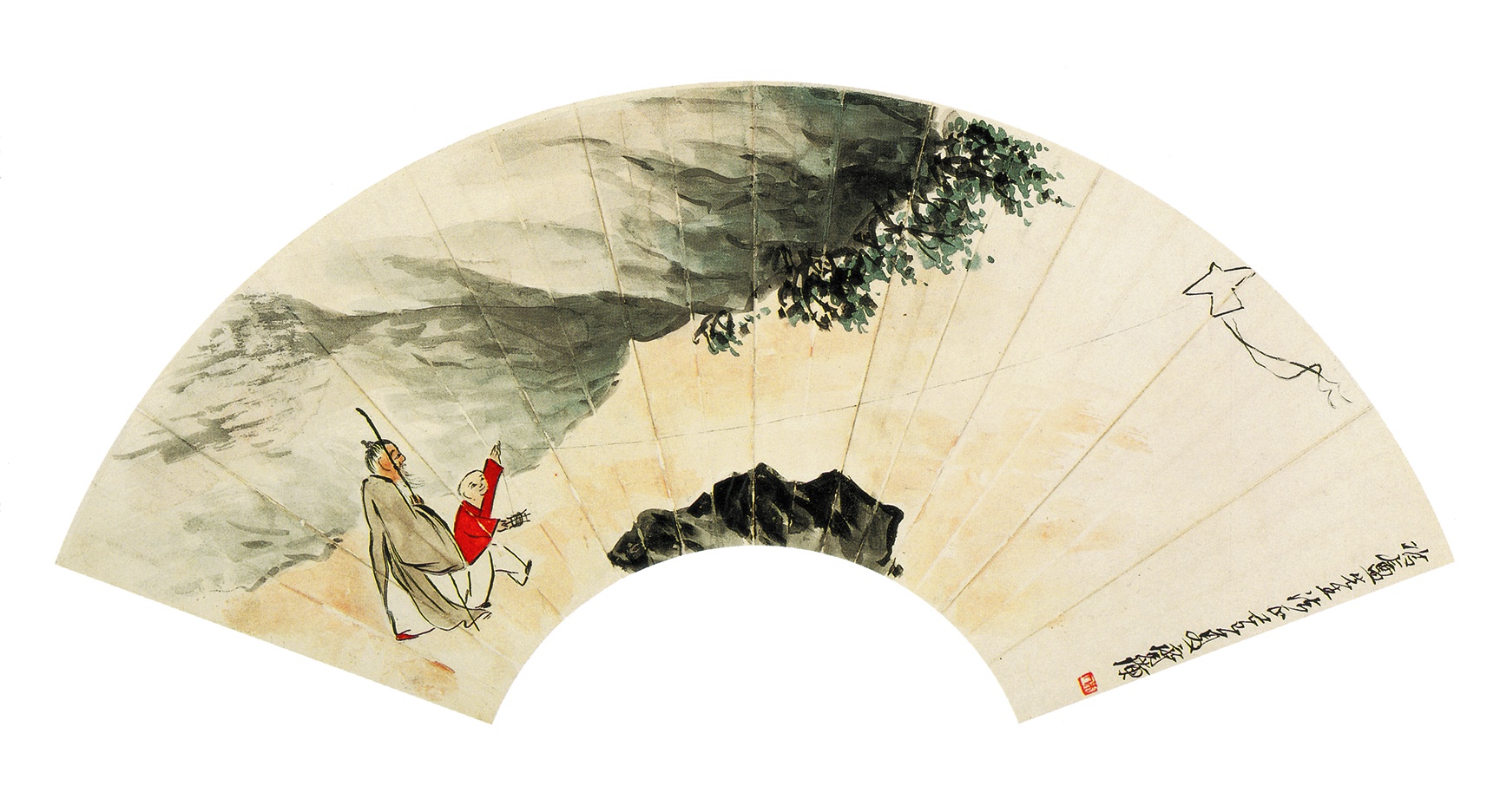 三八 放風箏(扇面) 一九二九年 縱一八厘米 橫五四厘米