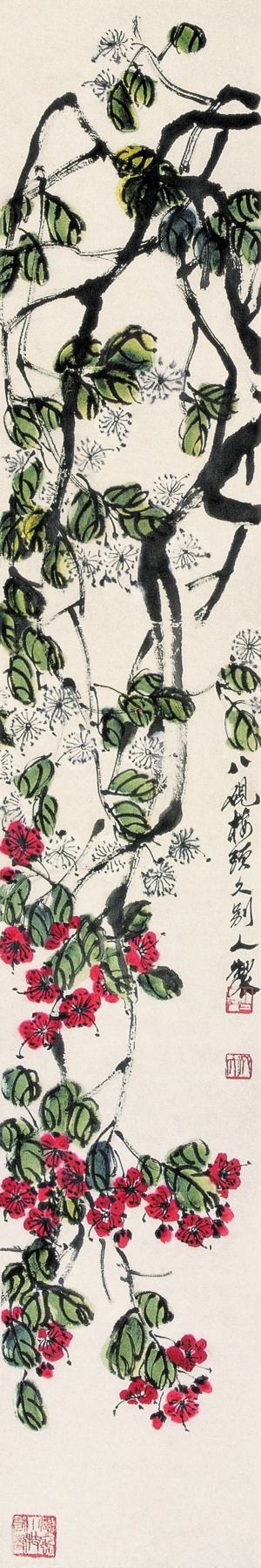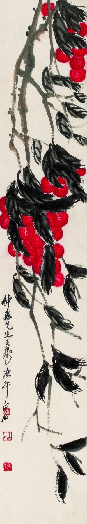 一四一 荔枝(花果四條屏之四)一九三〇年縱一三三厘米 橫二二厘米