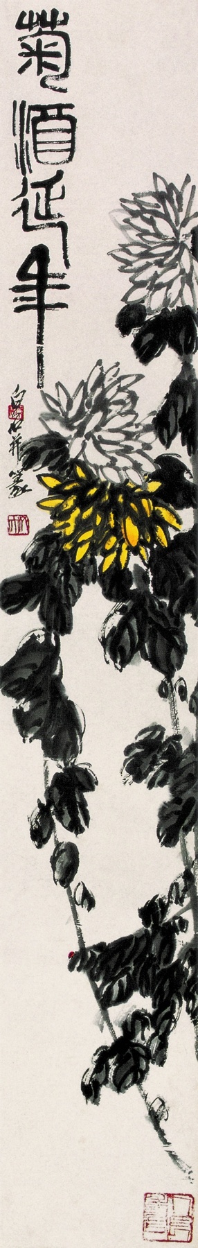 一四〇 菊花(花果四條屏之三)一九三〇年縱一三三厘米 橫二二厘米