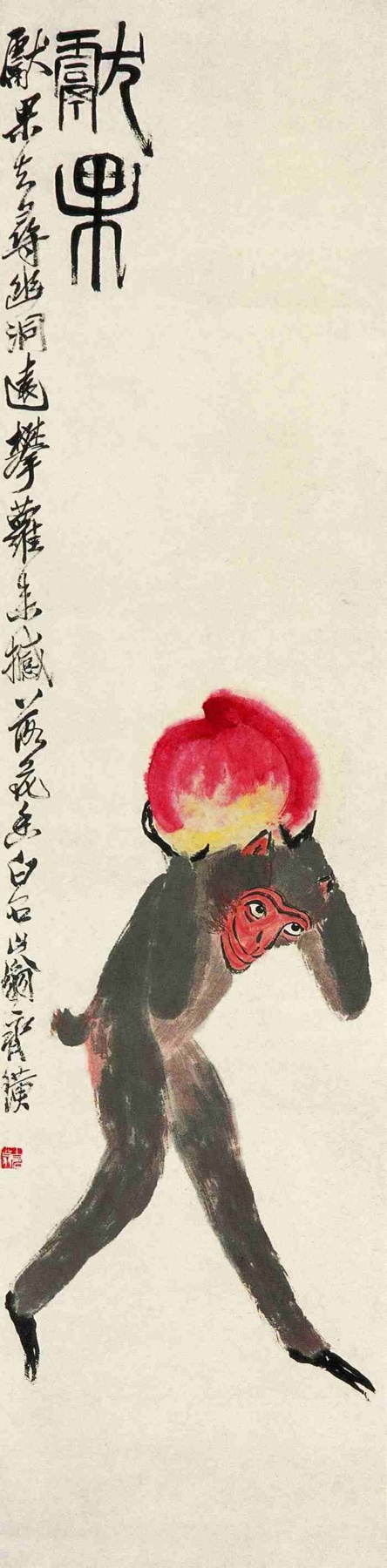 二八六 靈猴獻果圖 約二十世紀三十年代晩期 縱一三四厘米 恆三三點二厘米