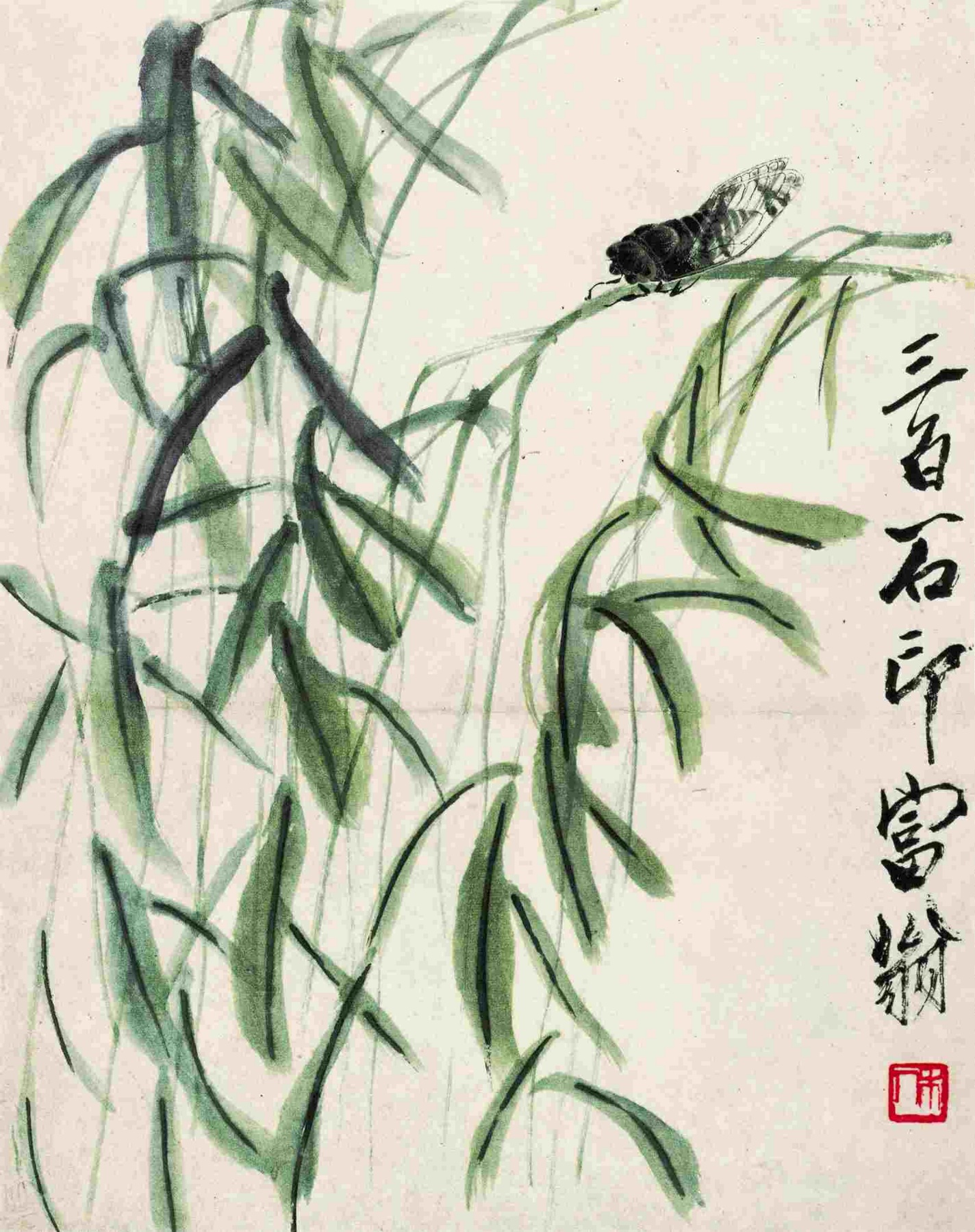 一七七 翠柳鳴蟬 約二十世紀四十年代初期 縱三六點五厘米 橫二六點五厘米