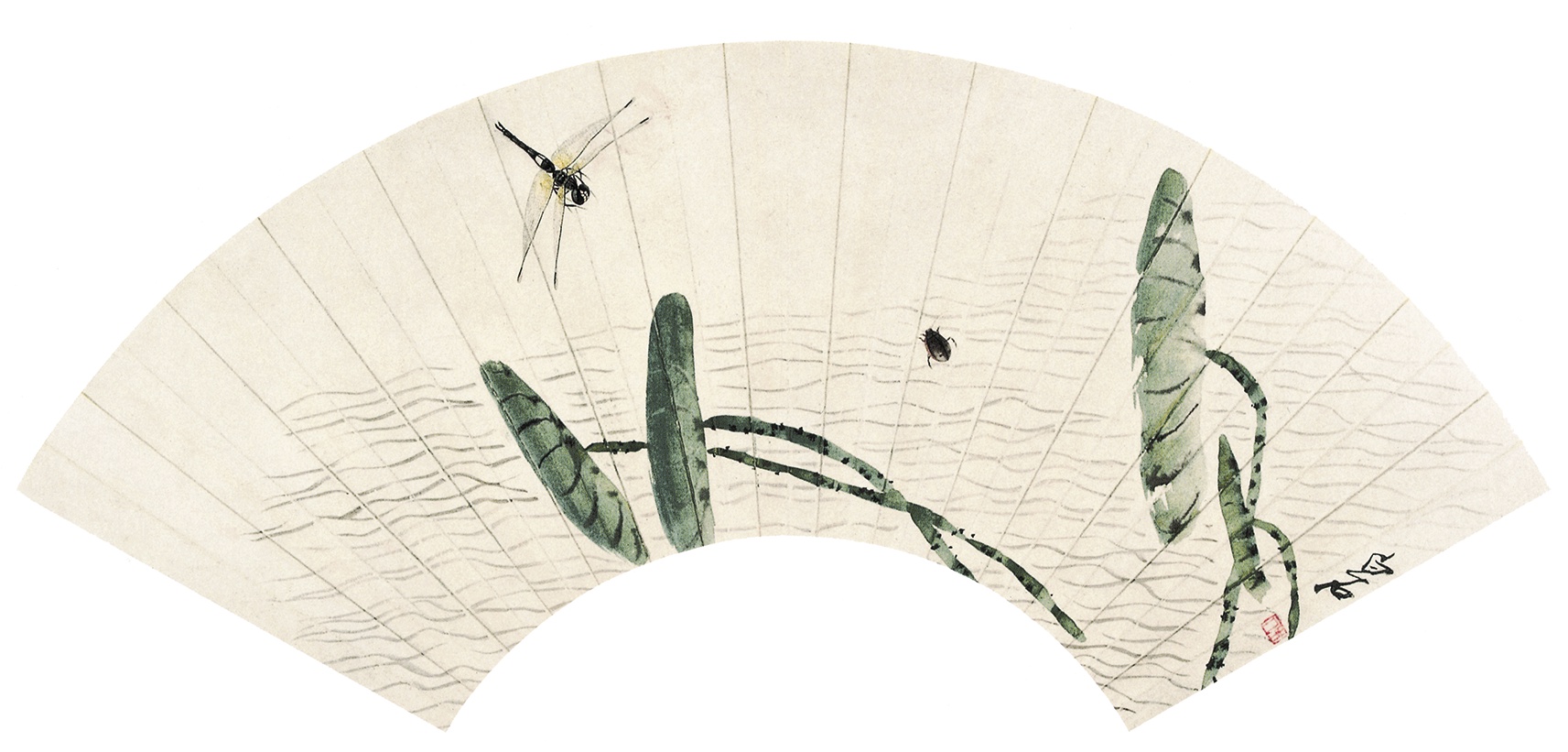 一七八 荷葉蜻蜓(扇面) 約二十世紀四十年代初期 縱一八厘米 橫五五厘米