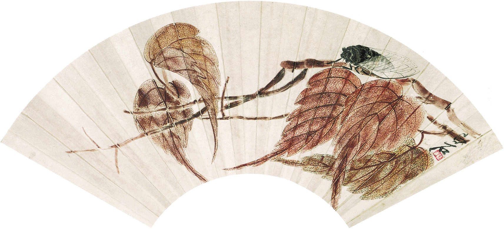 一八五 貝葉鳴蟬(扇面) 約二十世紀四十年代初期 縱二六厘米 橫五五點五厘米