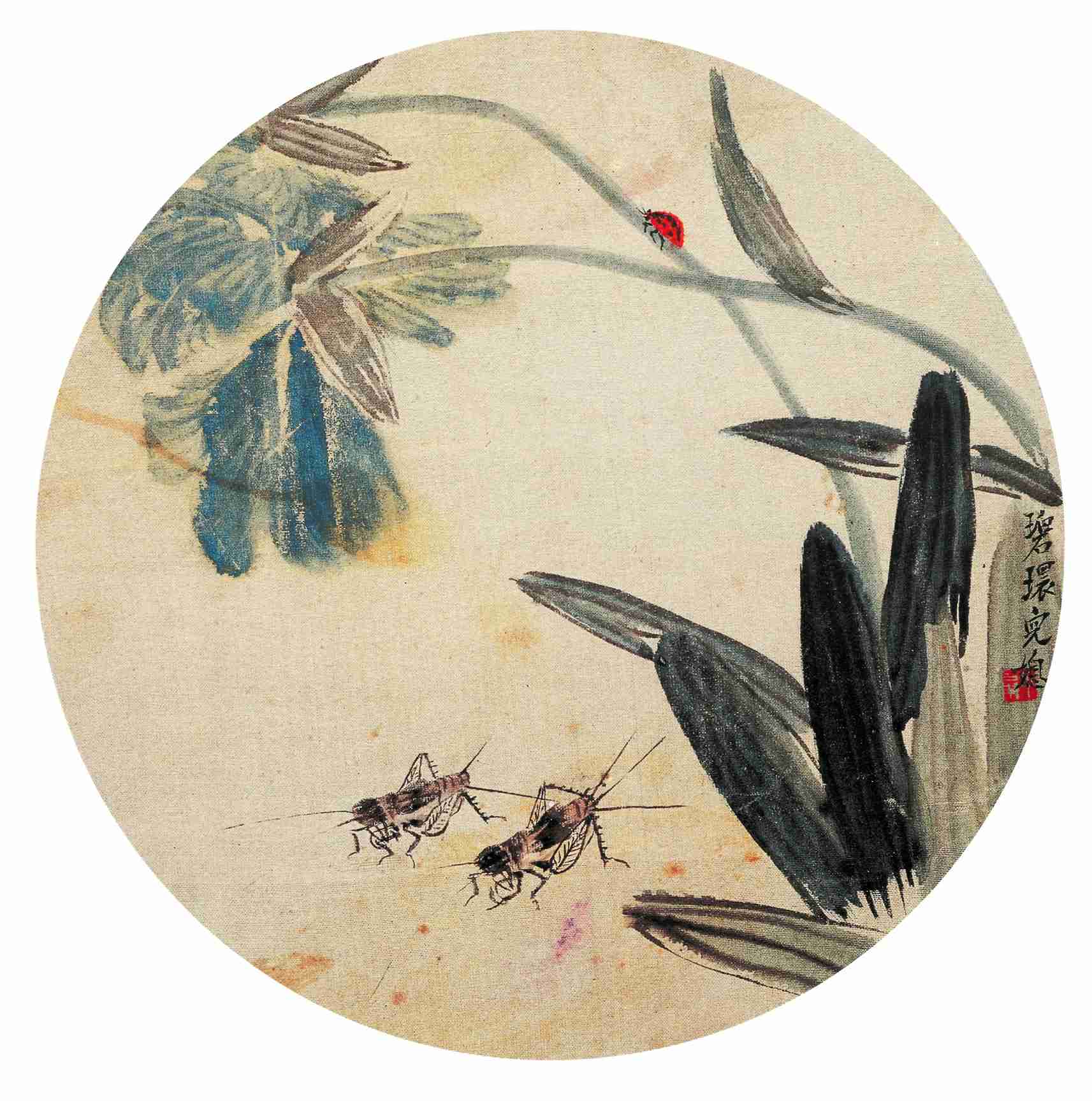 四四 蝴蝶蘭蟋蟀(團扇) 約二十世紀三十年代晚期 直徑二〇厘米