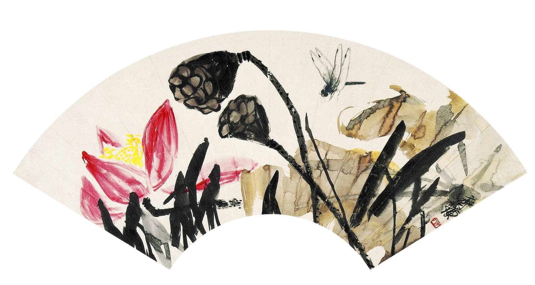 五八 蓮花蜻蜓(扇面) 約二十世紀三十年代晚期 縱一八厘米 橫五〇點二厘米