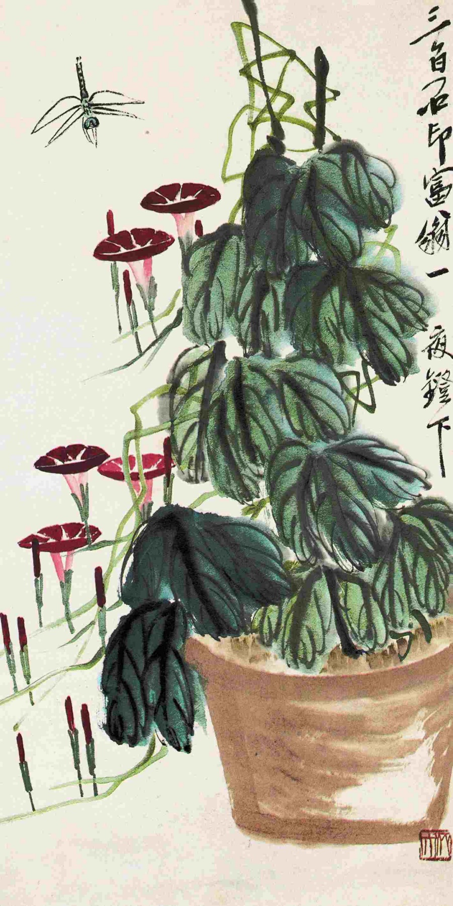 六二 牽牛花 約二十世纪三十年代晚期 縱一〇八厘米 橫三四厘米