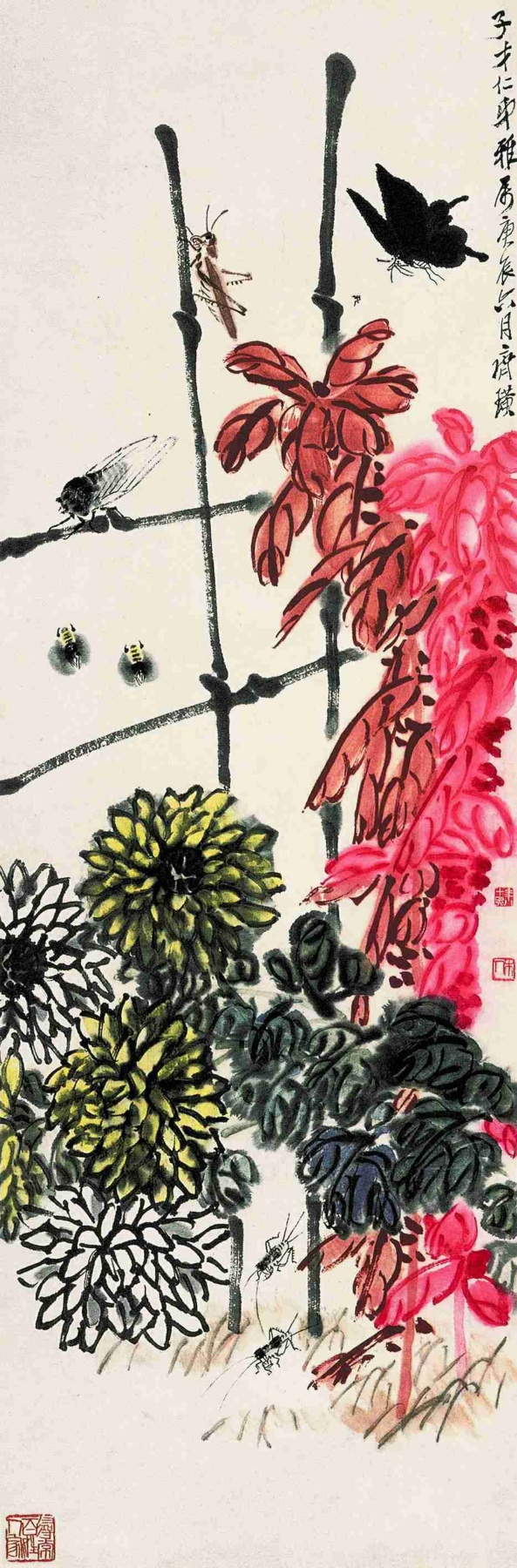 六七 藤蘿蜜蜂 約二十世紀三十年代晚期 縱一三二厘米 橫三七厘米
