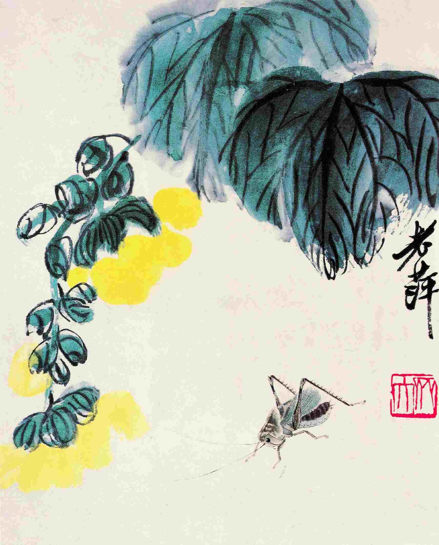 一二六 黄花蟈蟈(草蟲花卉册之三) 一九四一年 縱二九厘米 橫二二點五厘米