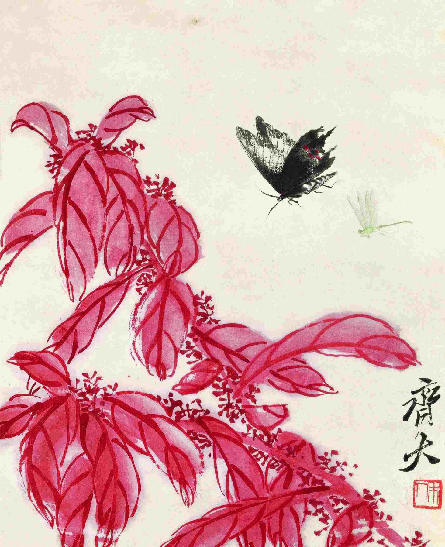 一四七 雁來紅蝴蝶(花草工蟲册之七) 一九四二年 縱三一點五厘米 橫二五點五厘米