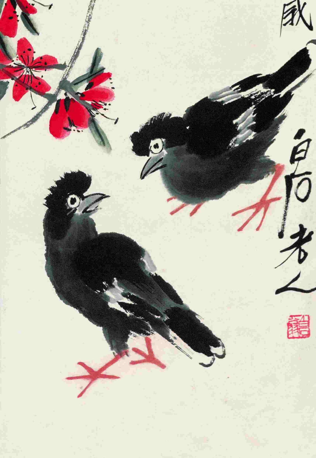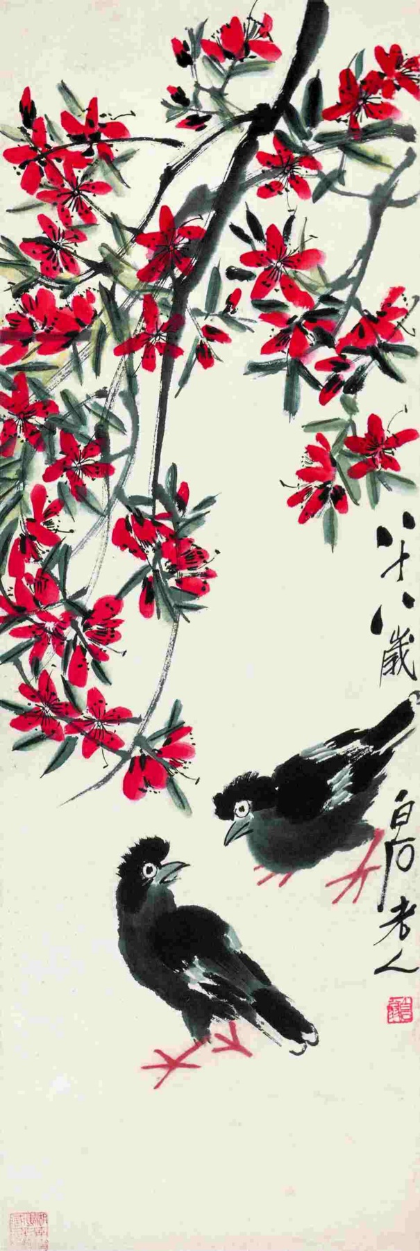二一九 桃花八哥 一九四八年 縱一〇二厘米 横三四厘米