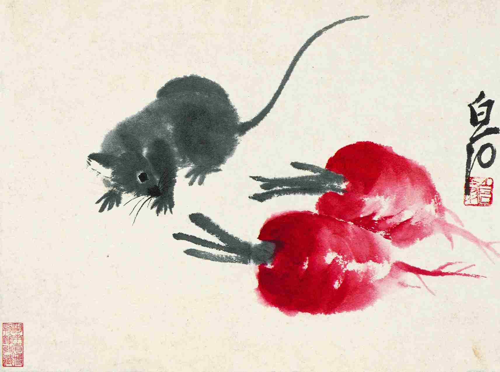 二二三 鼠·蘿萄(鼠子册真之四) 一九四八年 縱二七厘米 横三六厘米