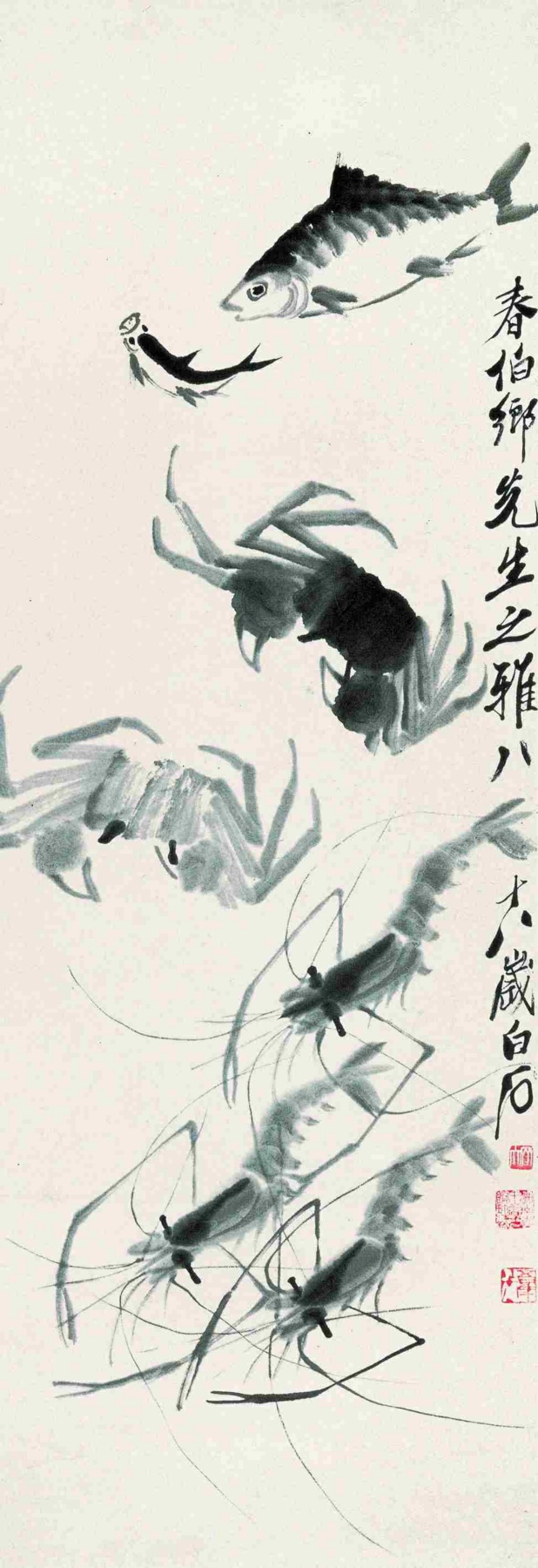 二九八 魚·蟹·蝦 一九四八年 縱一〇〇厘米 横三四厘米