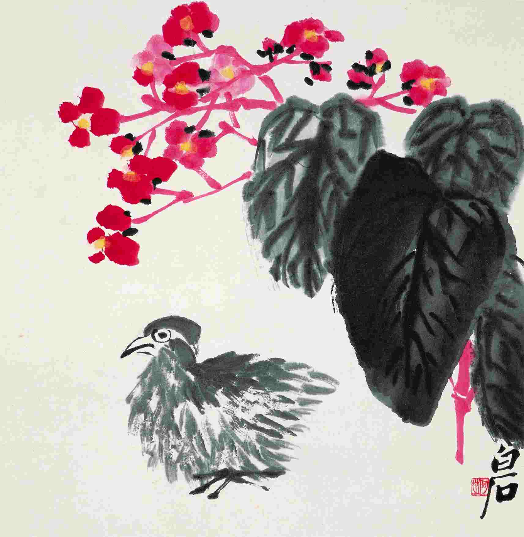 一四一 海棠小鷄(蔬果動物册頁之五) 一九四七年 縱三四點二厘米 横三三點八厘米