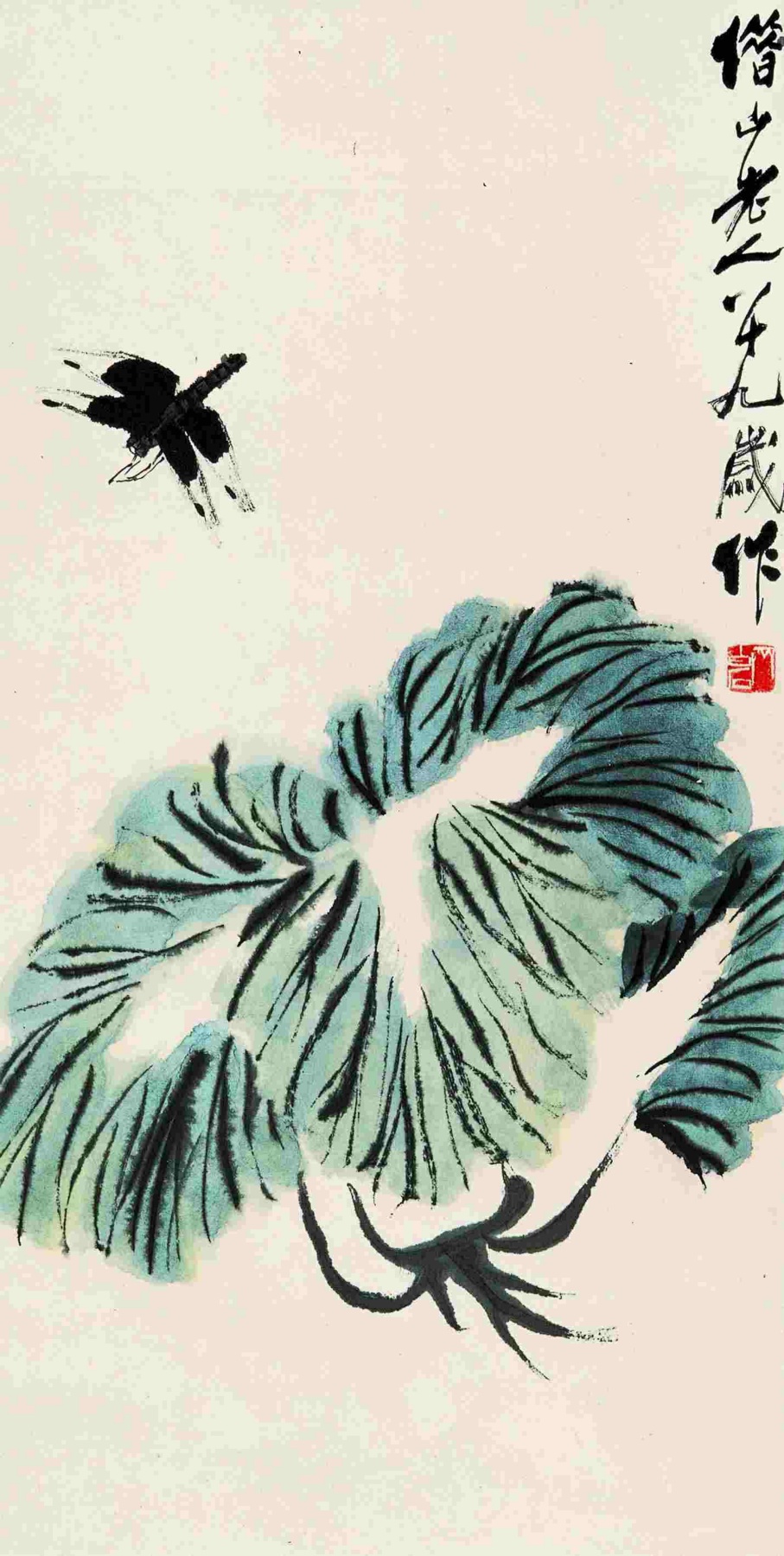 一二 白菜蜻蜓 一九四九年 縱六七點五厘米 横三三點九厘米