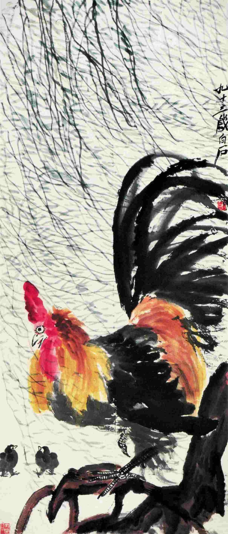 一八六 柳陰公鷄 一九五三年 縱一二六厘米 横五四厘米