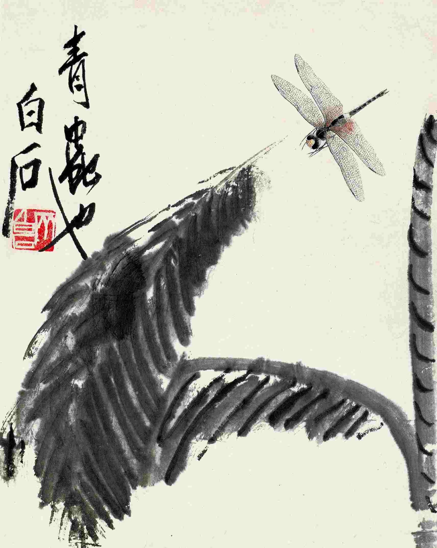 五四 芭蕉蜻蜓(草蟲册之二)約一九五〇年 縱三三厘米 横二六點五厘米