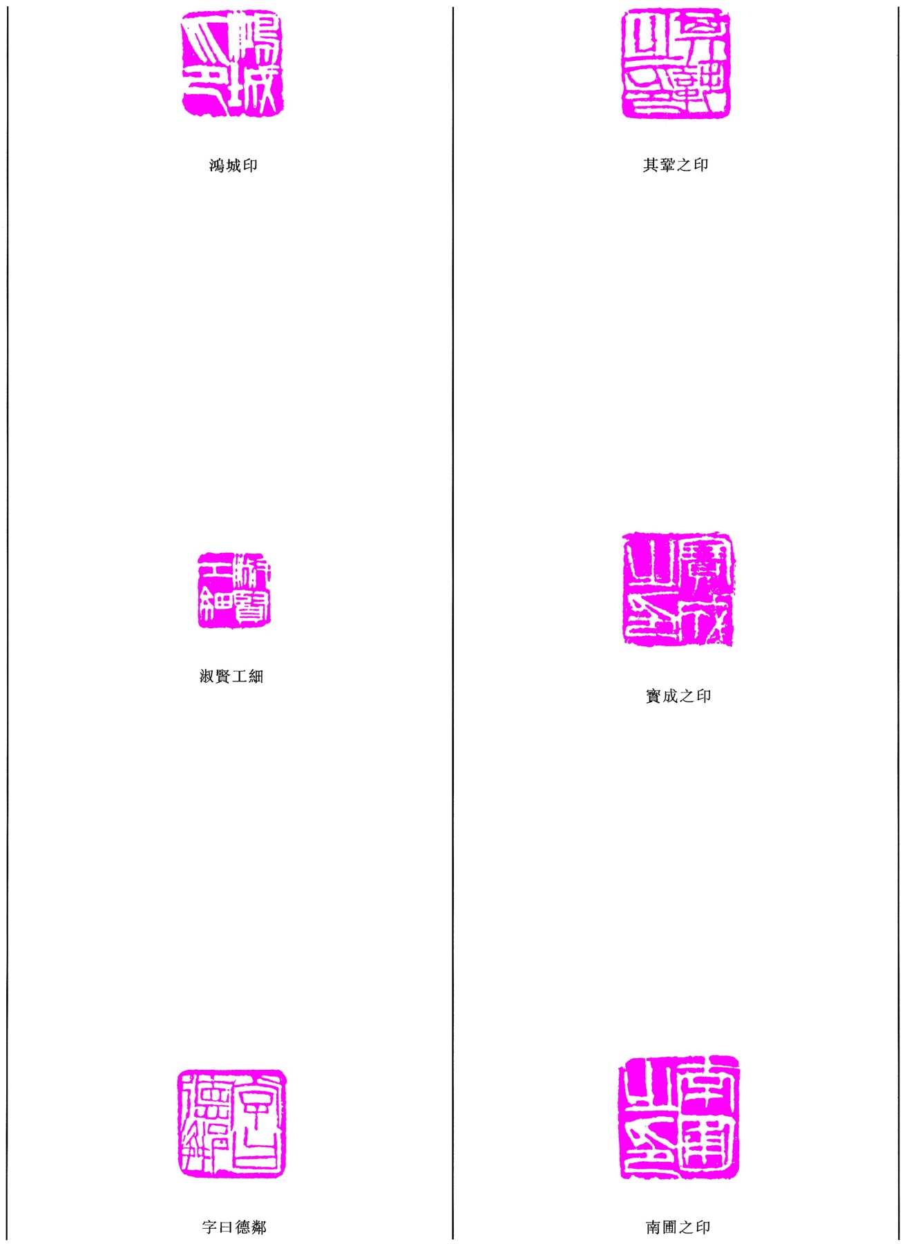 鴻城印/淑賢工細/字曰德鄰/南圃之印/寶成之印/其䡗之印