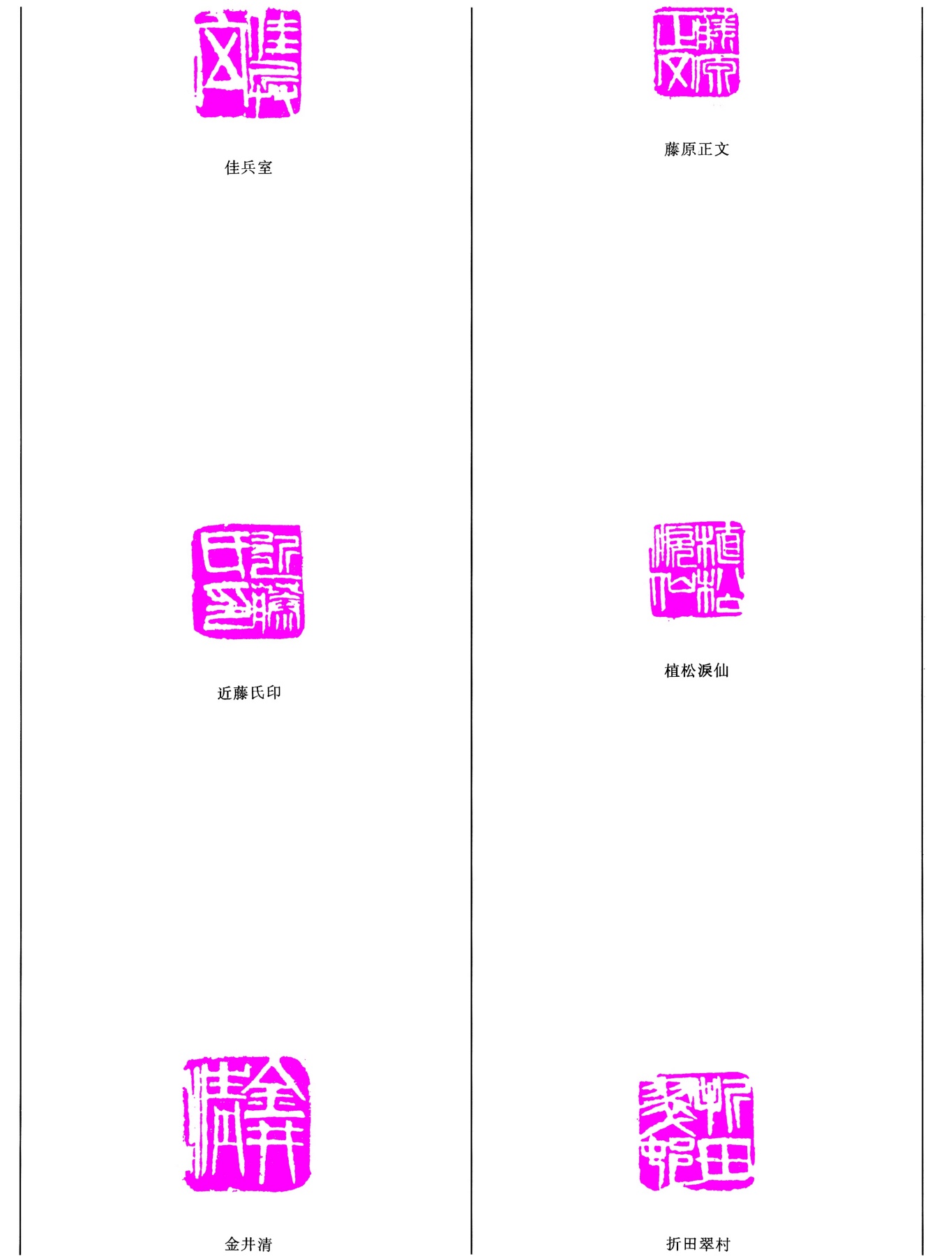 佳兵氏/藤原正文/近藤氏印/植松淚仙/折田翠村/金井清