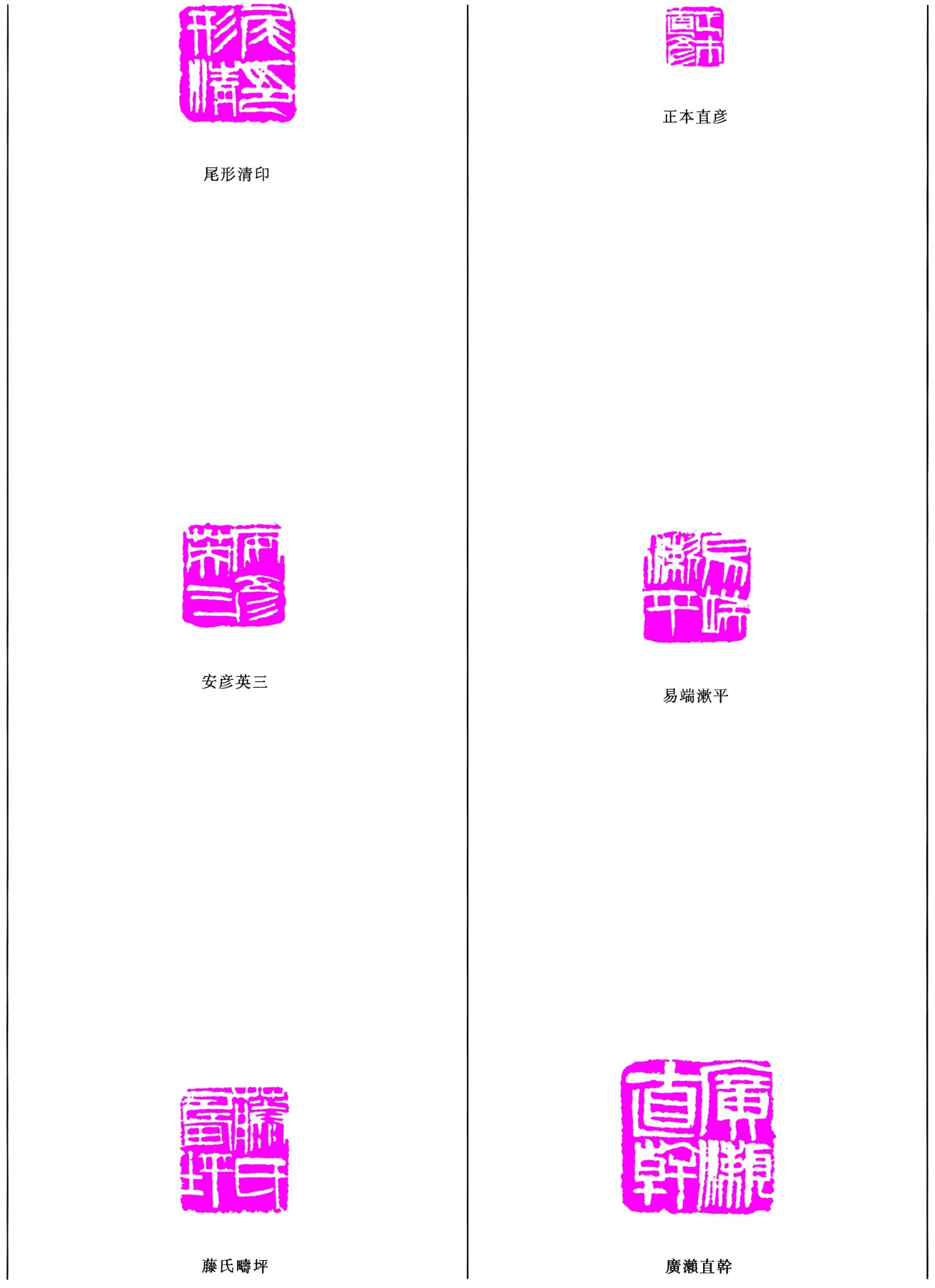 尾形清印/正本直彥/易端漱平/癀瀨直幹/安彥英三/藤氏疇坪