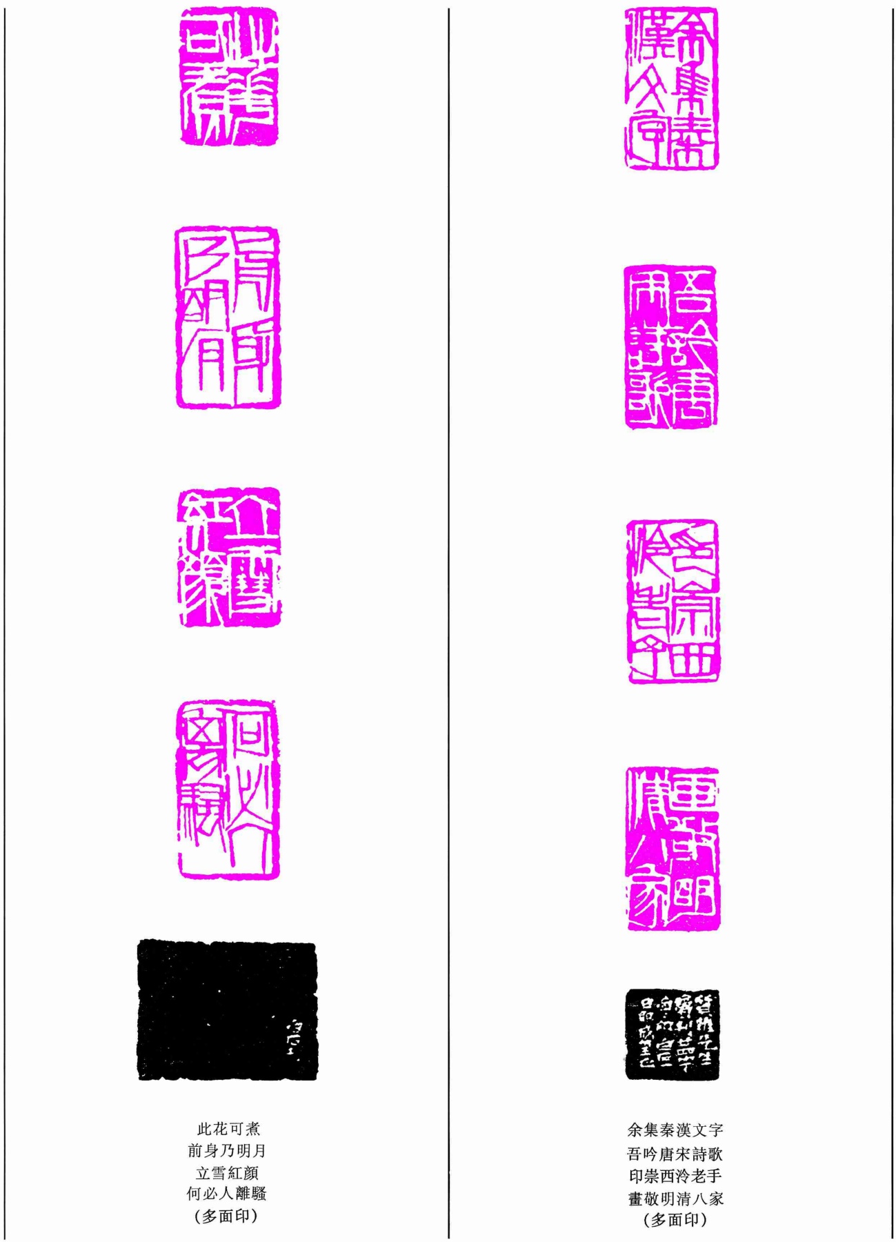 此花可煮前身乃明月立雪紅顏何必人離騷(多面印)/余集秦漢文字吾吟唐宋詩歌印崇西冷老手書敬明清八家(多面印)