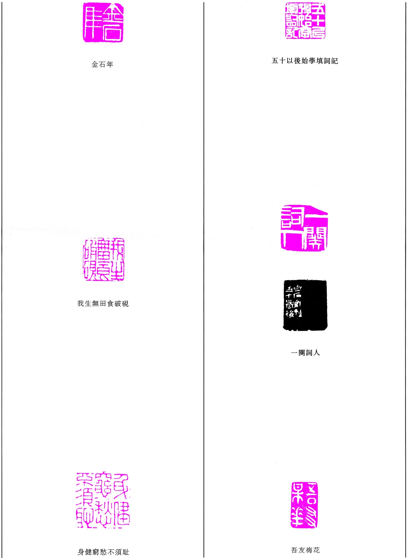 金石年/我生無田食破硯/身健窮愁不須耻/五十以後始學填詞記/一闋詞人/吾友梅花
