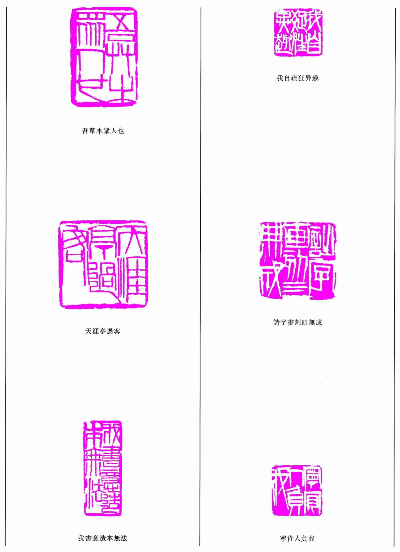 吾草木眾人也/我自疏狂异趣/天涯亭過客/我書意造本無法/詩字書刻四無成/寧肯人負我