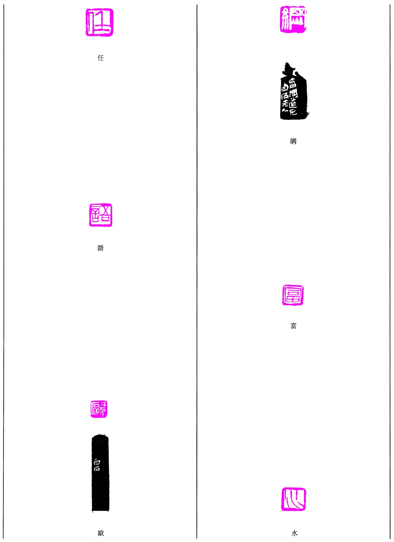 第一部分:自用印 姓名 · 字號 · 齊室 · 閑文 · 吉語